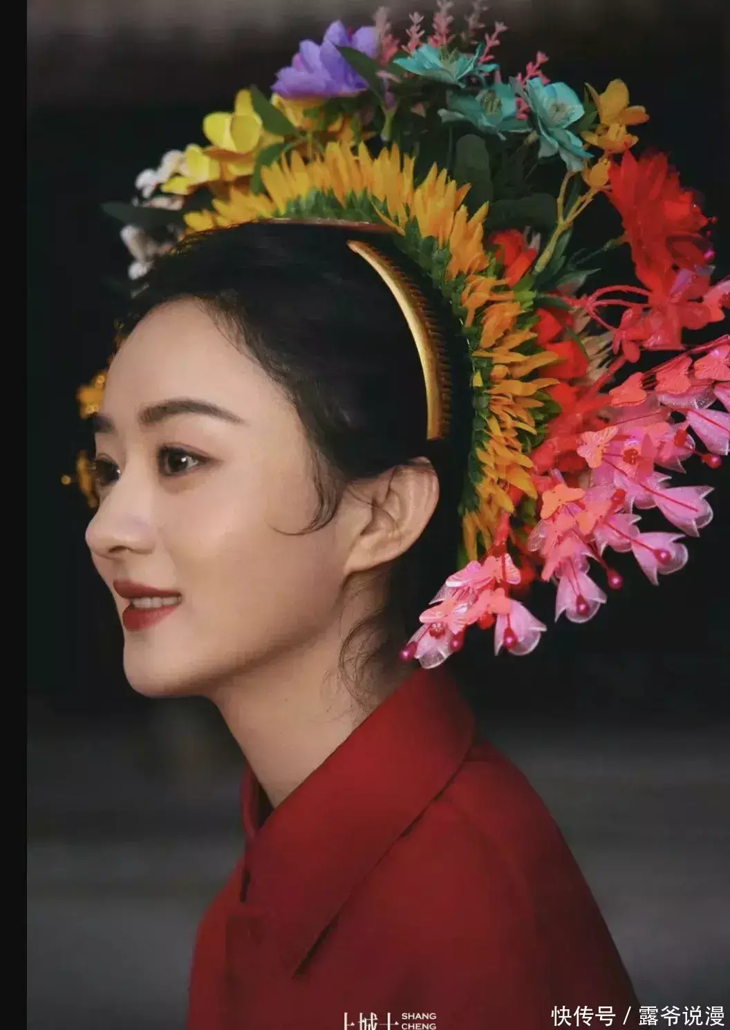 在CCTV综艺《开门大吉》中,也放了赵丽颖簪花照。