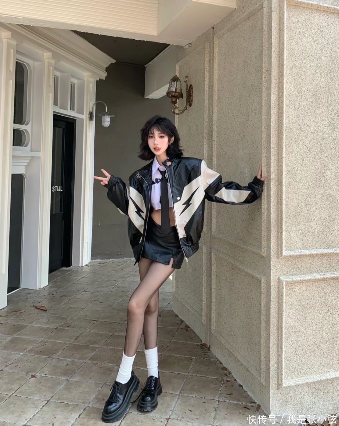 千万不要合计黑丝白袜的组合可塑性很低,本色上,当你搭配起来的技巧,就会发现,可以解锁多样时尚公式。比如咱们可以搭配廓形狡计的皮衣外衣,和黑丝酿成立场上的碰撞,再搭配上一条短款的皮裙,分分钟穿出回头率100%的适度。